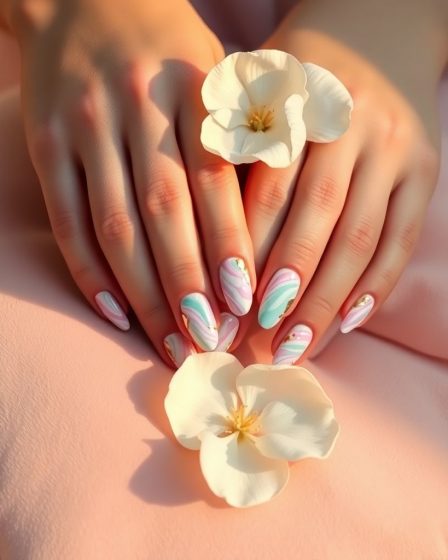 Pastel Marble Nail Art with Gold Foil Accents: A Trendy Nail Design Guide