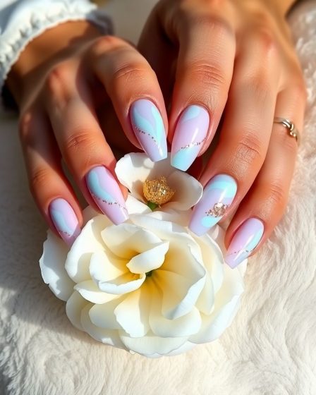 Pastel Marble Nail Art with Gold Foil Accents: A Trendy Nail Design Guide Dreamy pastel swirls meet luxe metallic touches in this gorgeous marble manicure. Effortlessly chic and perfect for any season, the soft lilac, mint, blush pink, and baby blue tones blend with delicate white veins. Enhanced by glimmering gold foil accents, this nail …